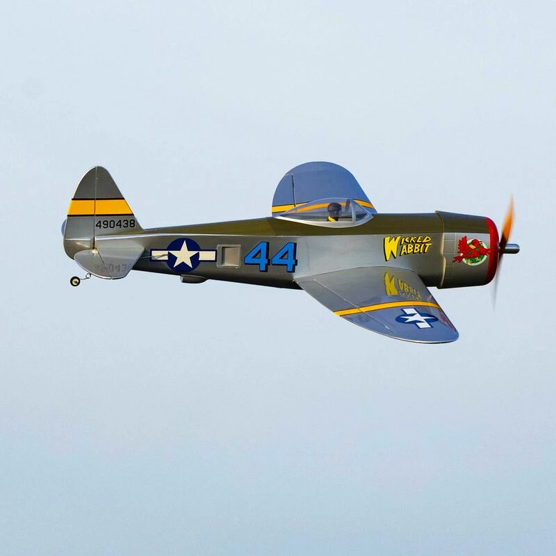 For the sport and club pilot looking to transition from a foam to balsa aircraft, the new Hangar 9ยฎ Fun Scale P-47 Thunderbolt delivers a true Plug-N-Playยฎ completion replica model of one of the most popular WWII warbirds ever modeled. Foam RC pilots will be familiar with the P-47 brushless outrunner power system, wide variety of battery options and easy field assembly, while the all-wood airframe is finished in genuine UltraCoteยฎ that’s long lasting and easy to maintain.
