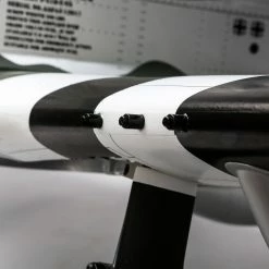 Leading the list of stunning details is the expertly applied, satin-finish covering of the sleek airframe. The lightweight material captures within scale features like panel lines, rivets, nomenclature and distinct colors for a brilliant appearance thatโs durable. Bringing out its authenticity even further is a well-appointed cockpit with a 3D instrument panel, an intricately painted pilot figure and faceted utility compartment. Cowling detail features a matching finish with scale inlets and exhaust, plus a matching spinner. Optional-use wing tanks can be attached on the included wing pylons, or removed to improve high-speed maneuverability. Functional shock-absorbing gear struts include trailing-link suspension and scale-style axles with room for large wheels that make flying from grass easier.